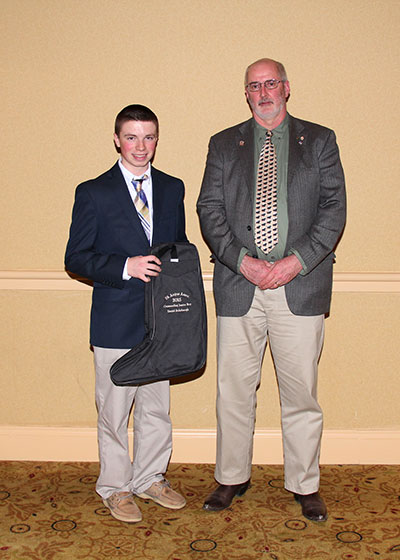 The Pennsylvania Angus Association presented Daniel Rohrbaugh, Seven Valleys, left, with the Outstanding Boy Award at the 2016 Pennsylvania Angus Association Annual Meeting and Banquet, Jan. 8 in Harrisburg, PA. Pictured presenting the award is Gene Trowbridge, Pennsylvania Angus Association President. Photo by Will Mayfield, American Angus Association.